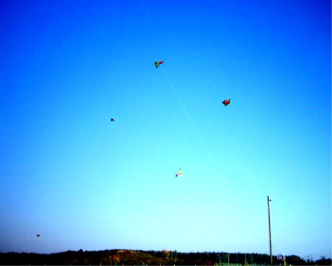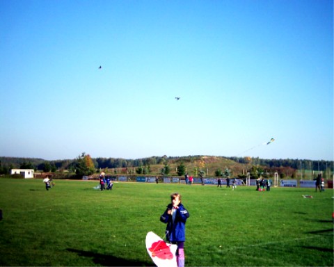 Flieg Drachen, flieg ! Viele Drachen sind schon in gewaltiger Höhe. Natürlich gab es aber auch Startprobleme.