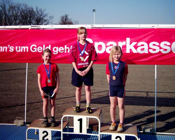 In der Altersklasse 2 am Start, Anne Bade, Virginie Kutzner, Elisa Böhme und Nathalie Gabrisch (1./3./5. und 6. von links) 200 m vor dem Ziel lag Virginie noch deutlich vor Elisa. Siegerehrung AK 2, Silber Elisa Böhme, Bronze Virginie Kutzner.
