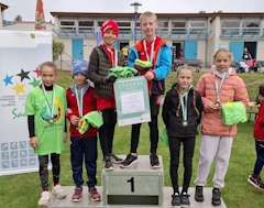 Dem Lampertswalder Team mit Madlen Mayer, Julie Küttner, Amelie Döring, Denny Langkabel, Mailo Kretzschmar und Johann Wenzel gelang dabei etwas ganz Tolles. Mit einer Gesamtzeit von 13:06,24 Minuten holte man sich den Bronzeplatz unter den 14 teilnehmenden Grundschulen. Zu Silber (16. GS Dresden) fehlten nur 0,52 Sekunden. Gold ging mit 10 Sekunden Vorsprung an die Grundschule Heidenau.