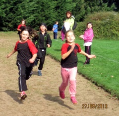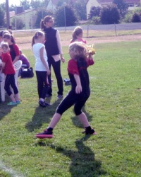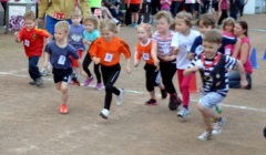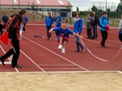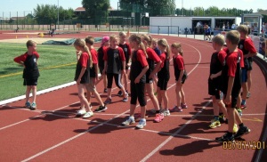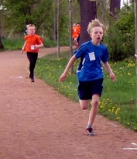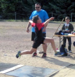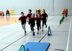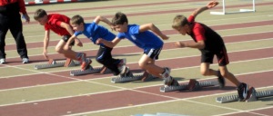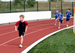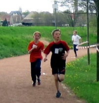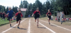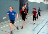 Im Foto Cedric und Jonas beim 50m-Lauf, Lisa mit